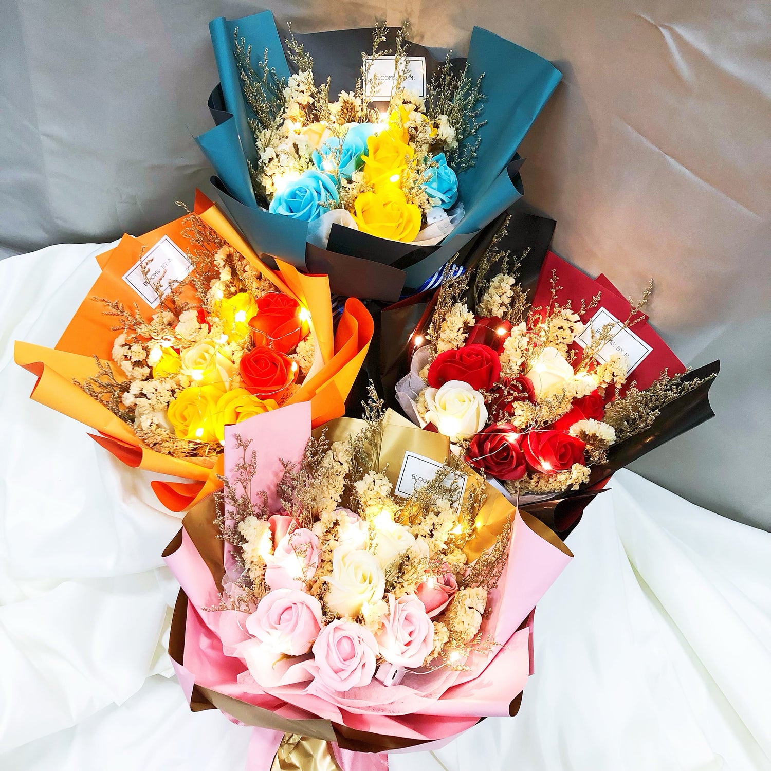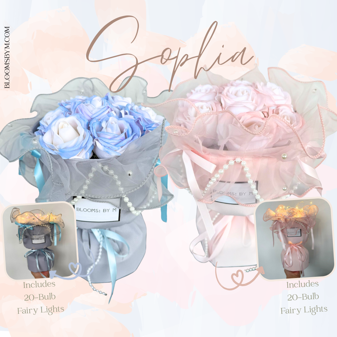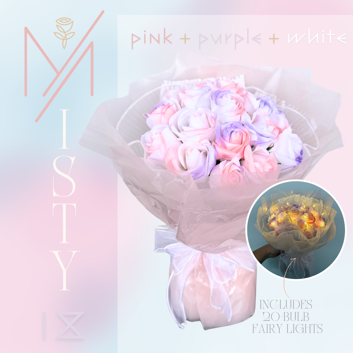 A girly girl's bouquet of 7 gradient-colored roses from lasting scented forever...