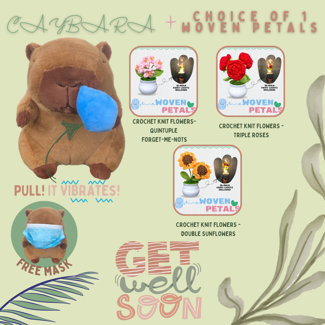 Get Well Soon Capybara + Crochet Knit Flowers Woven Petals Bundle