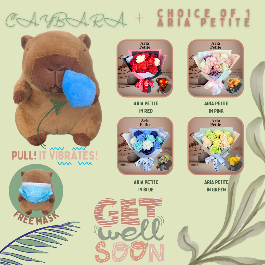 Get Well Soon Capybara + Soap Flower Rose Bouquet Aria Petite Bundle