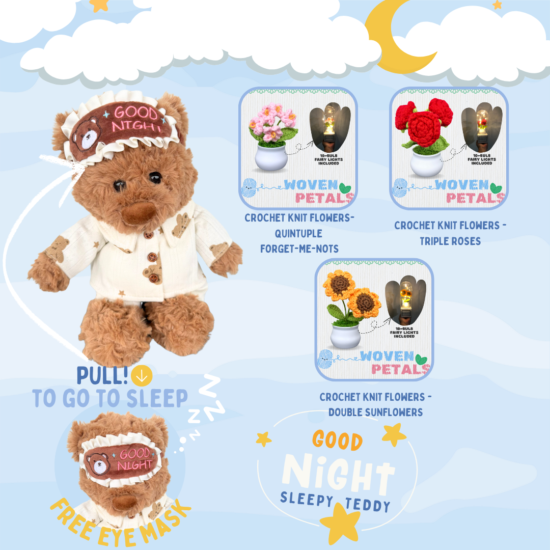 Good Night, Sleepy Teddy + Crochet Knit Flowers Woven Petals Bundle