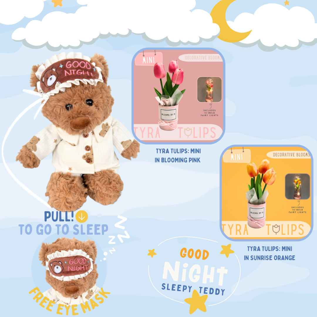 Good Night, Sleepy Teddy+Faux Tulips Flower Box-Tyra Tulips Mini Bundle