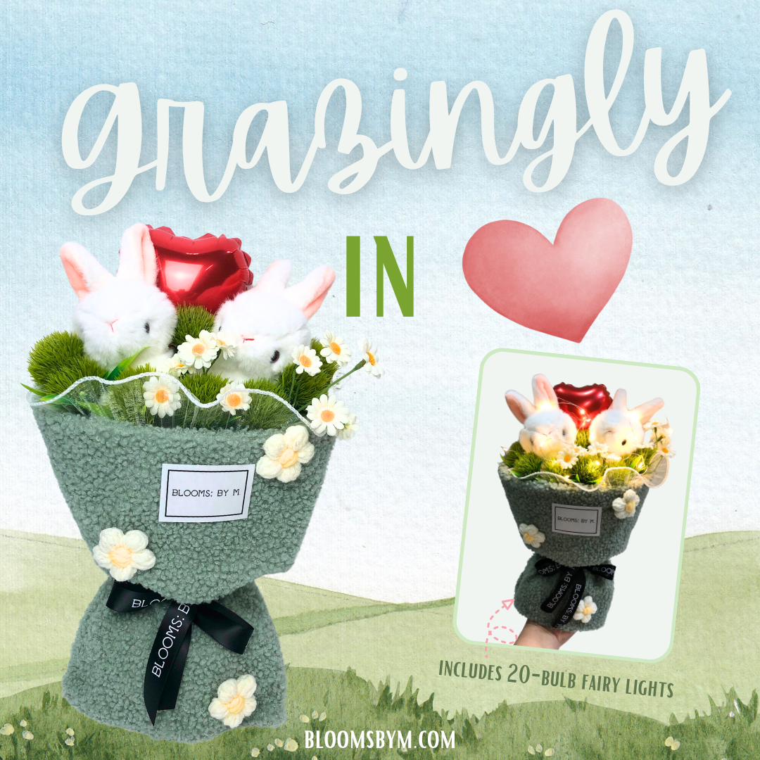 Love is in the meadows with our couple animals grazingly in love. Soft fleece wrapping decorated with pop-out spring daisies.