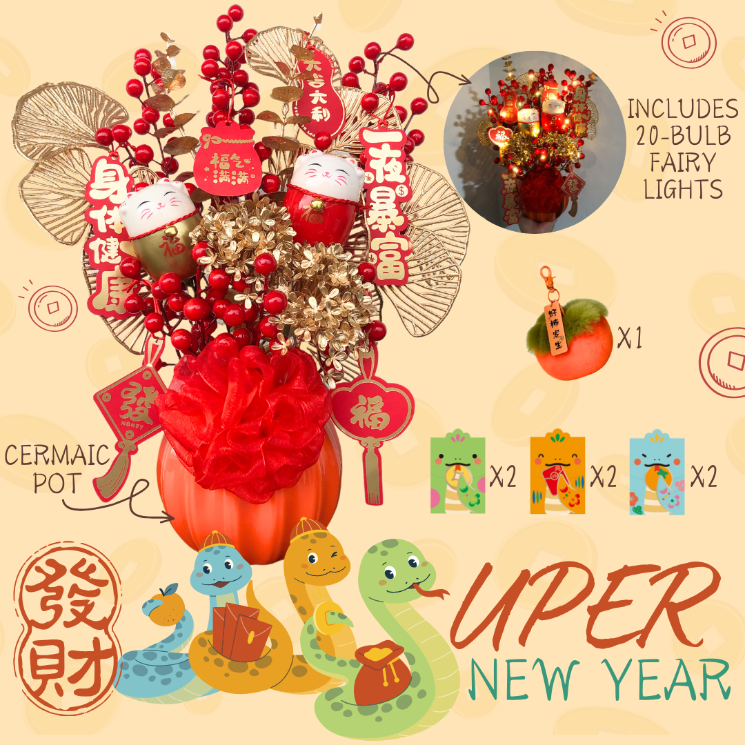 Happy CNY - SSSuper Huat-dle - Decorative Flowers Pot - 新年花装饰