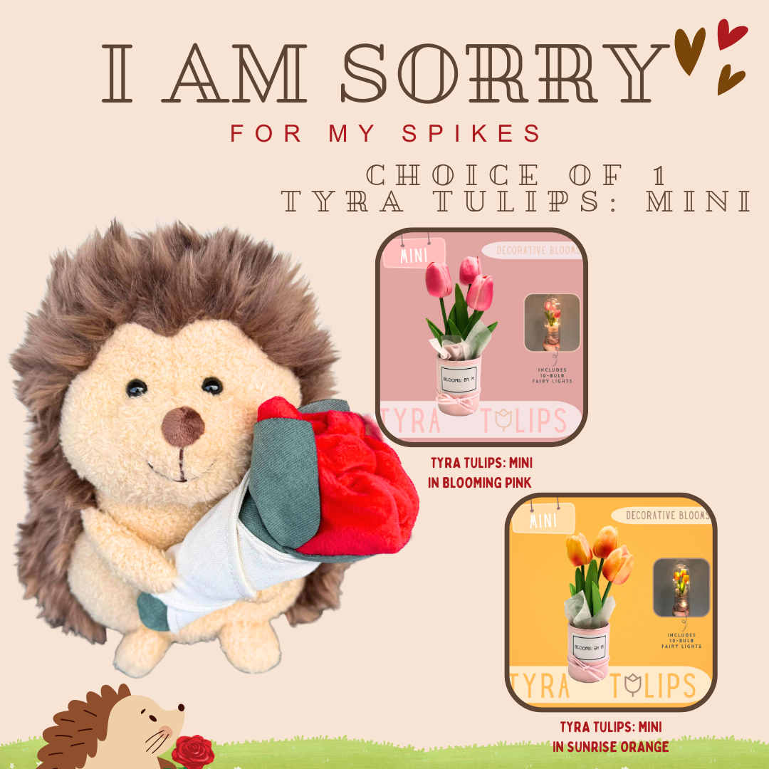 I am Sorry: Hedgehog+Faux Tulips Flower Box-Tyra Tulips Mini Bundle