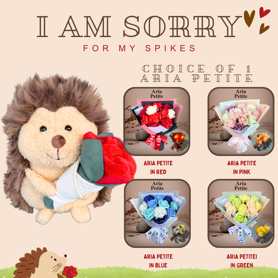 I am Sorry: Hedgehog + Soap Flower Rose Bouquet Aria Petite Bundle