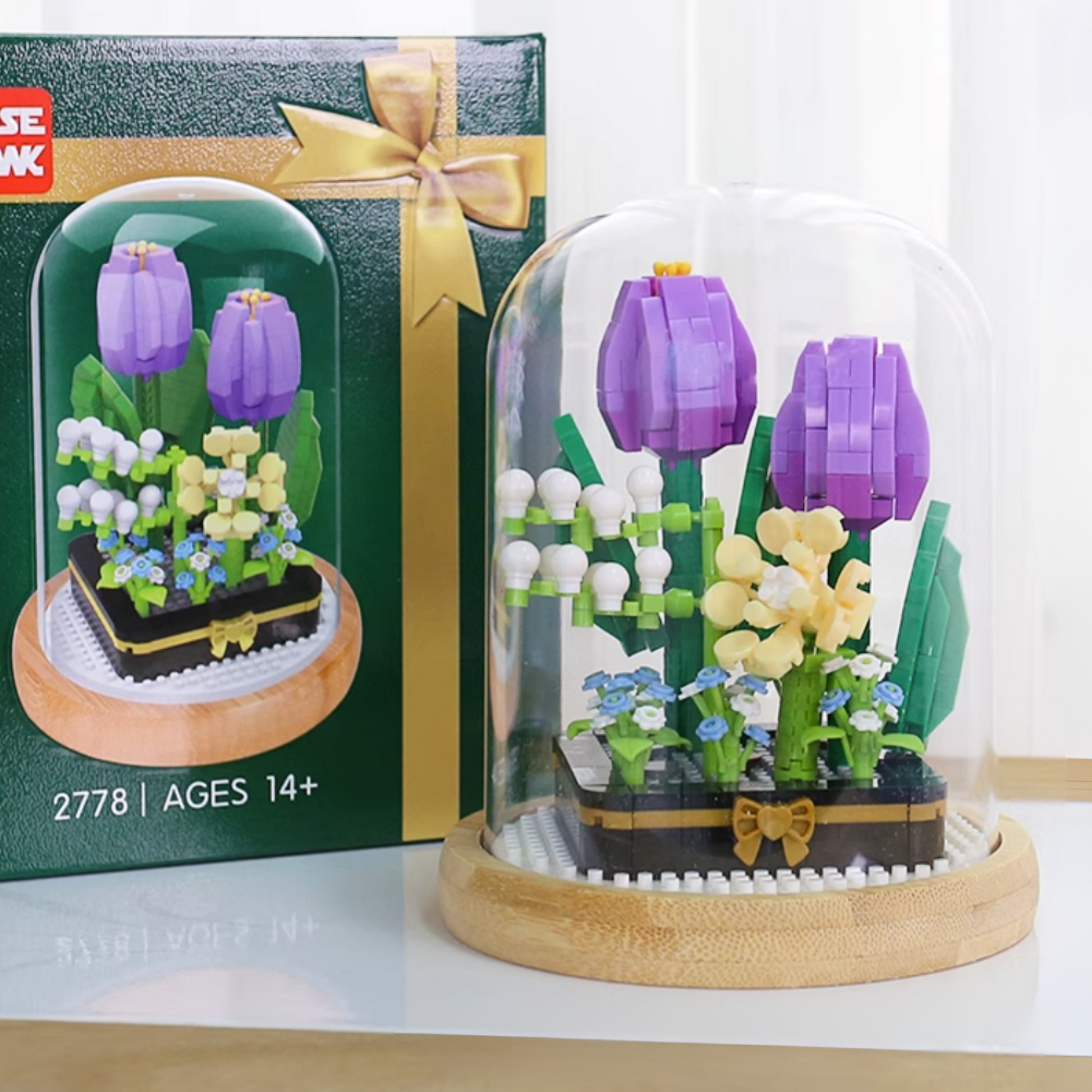 Brick Toy Flower - Mini Glass Terrarium - Tulips (531 pieces)