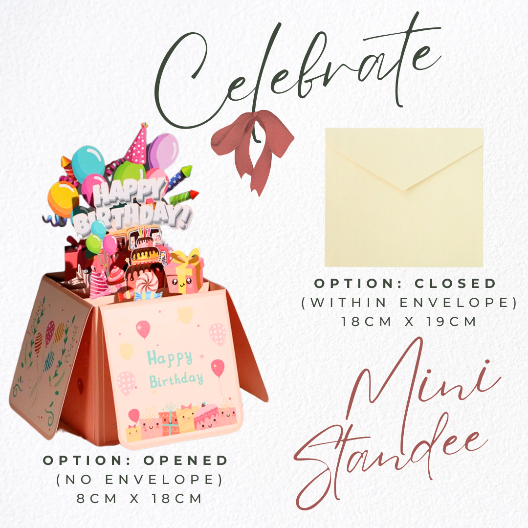 Palm-sized mini standee that puts the extra pop in the celebration and don't take up space!