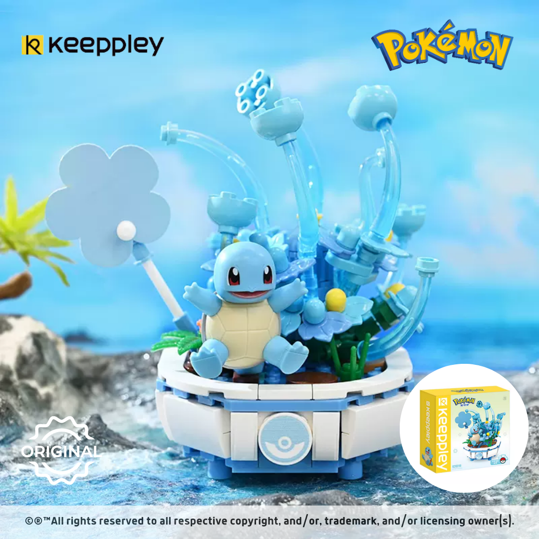 Squirtle (Pokedex #0007), from the popular Pokemon series, in its elemental habitat with a special garden theme.