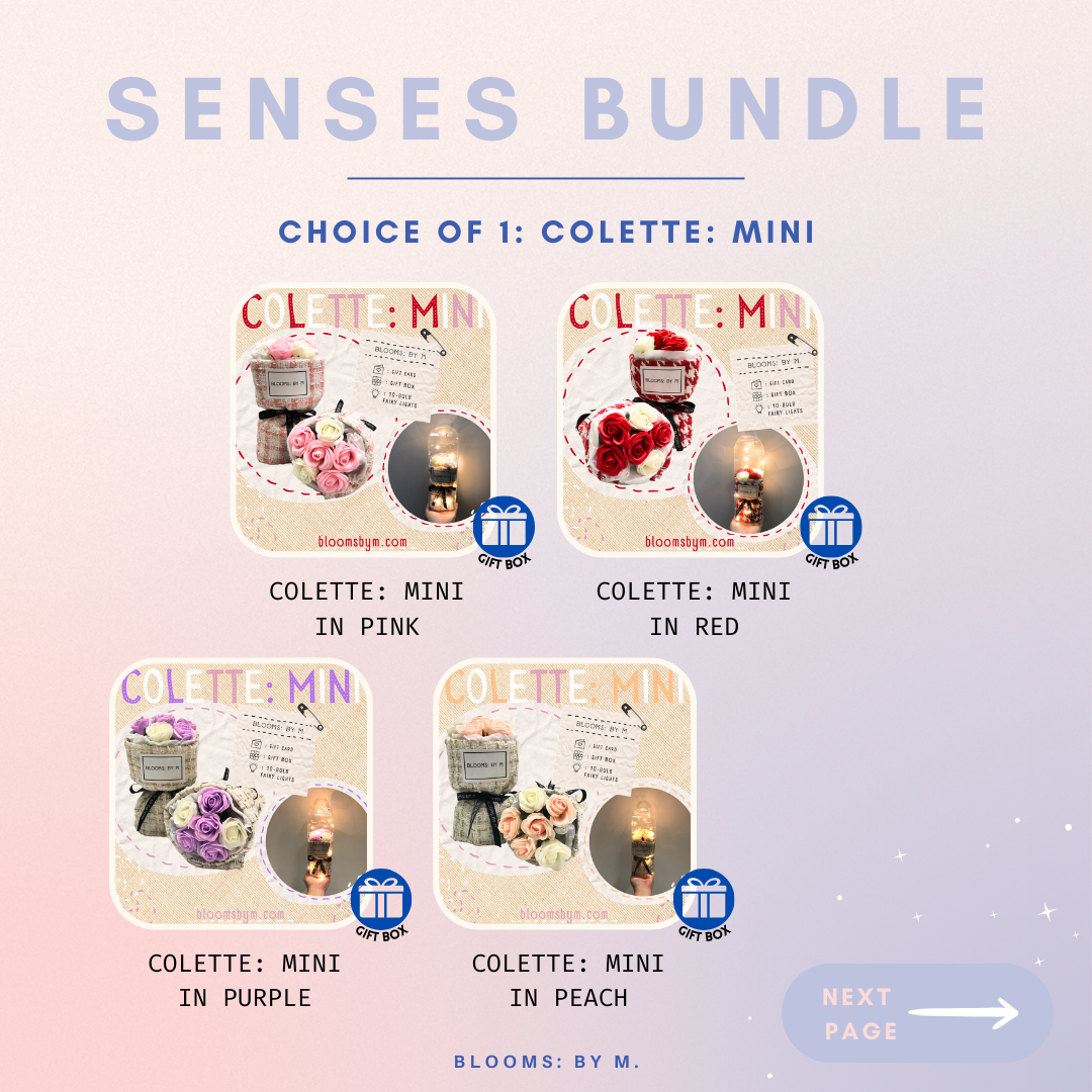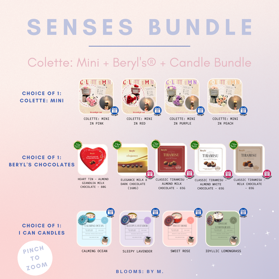 Senses Bundle - Colette: Mini Soap Flowers Bouquet + Beryl's Chocolate (Halal) + Candle