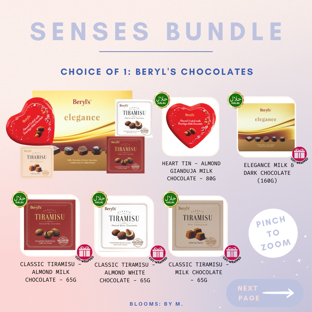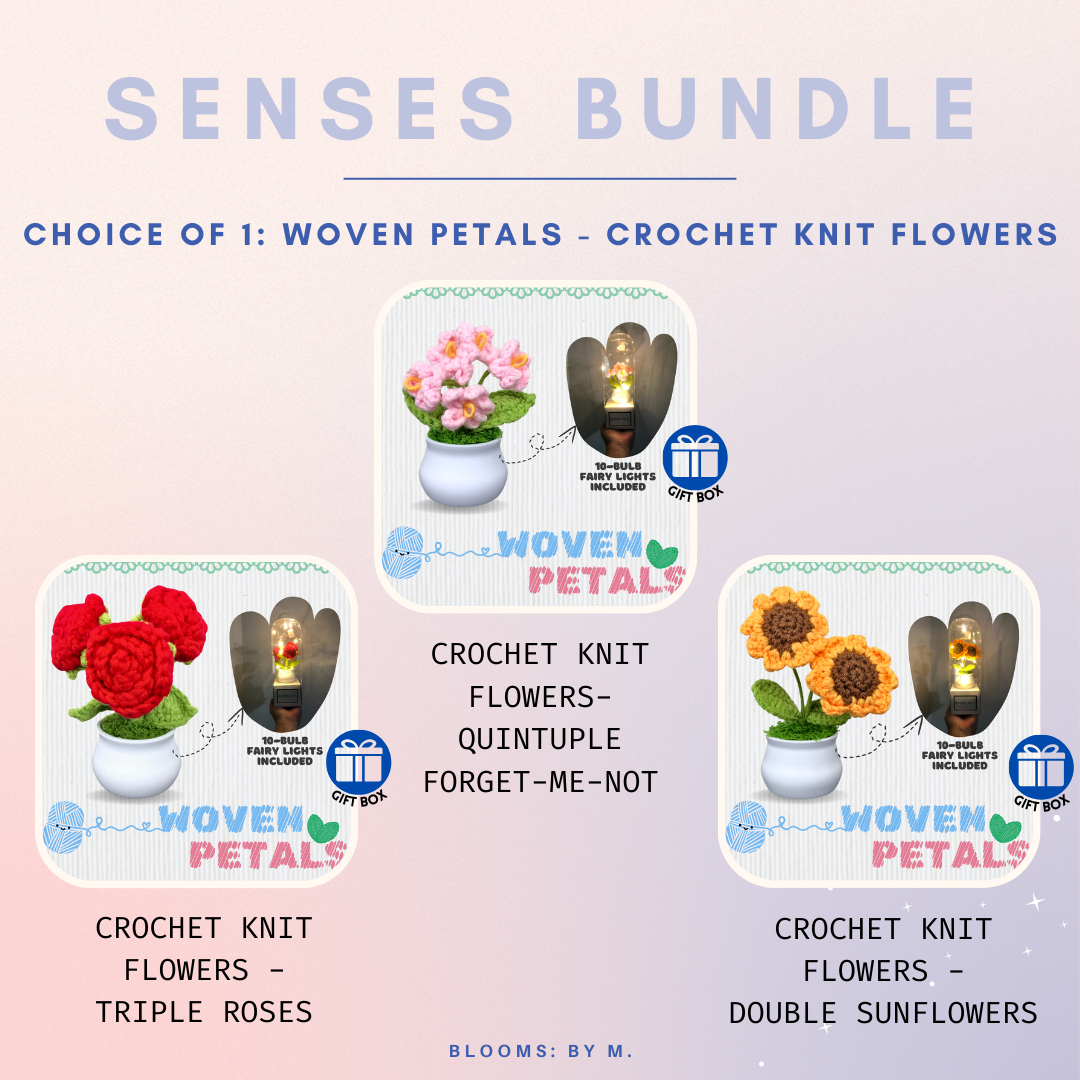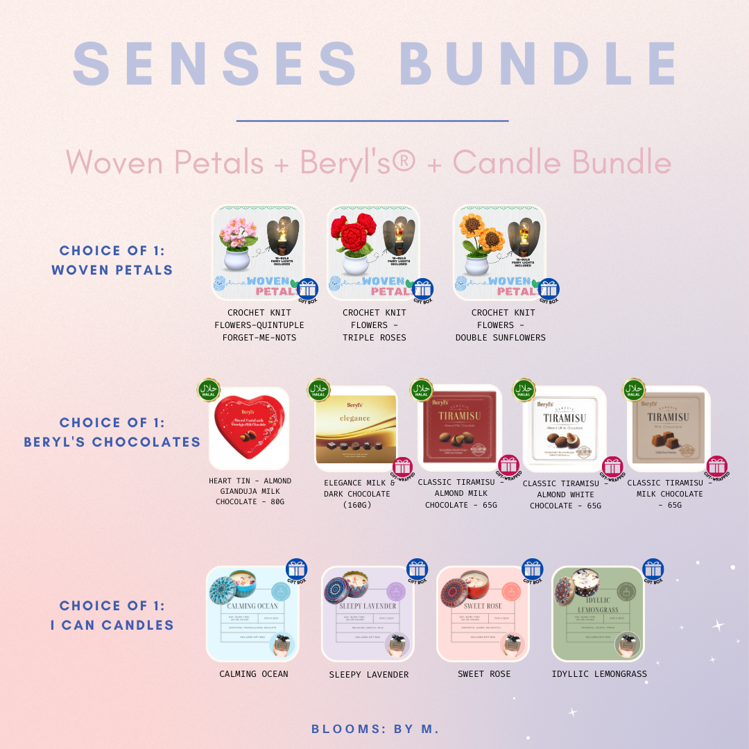 Senses Bundle - Woven Petals Crochet Knit Flowers + Beryl's Chocolate (Halal) + Candle