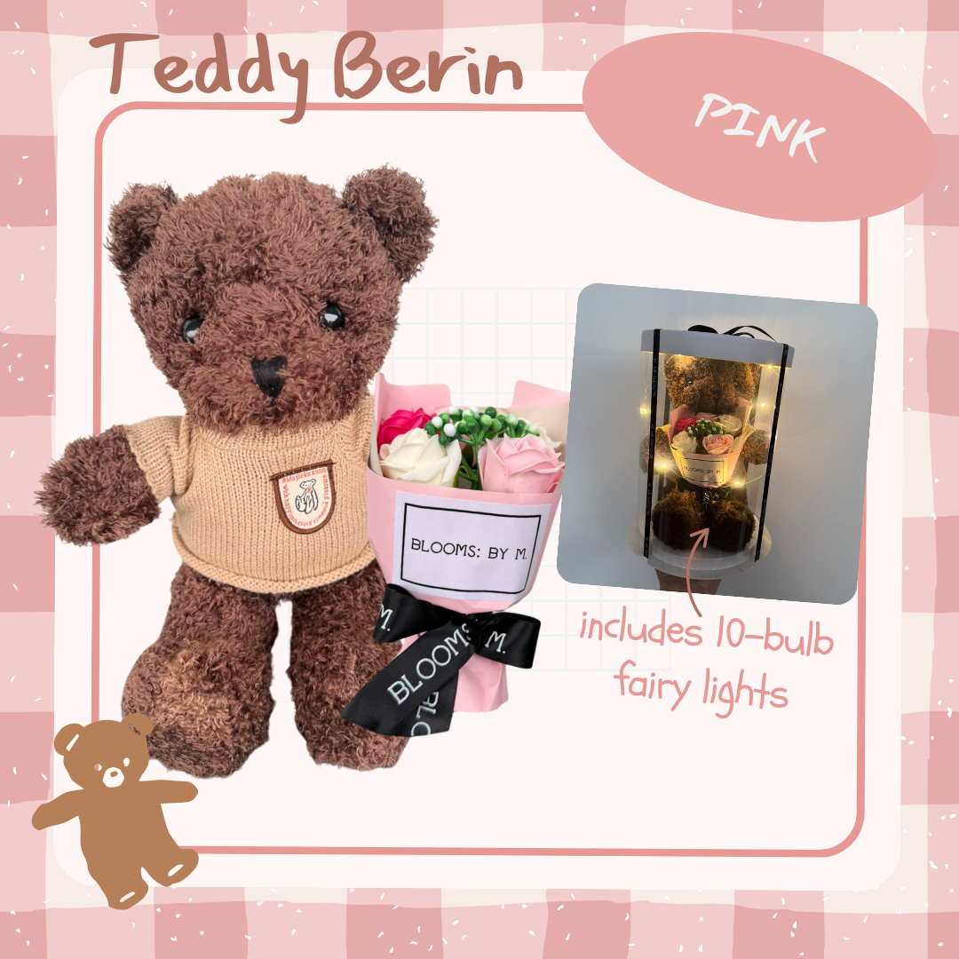 Teddy Berin Plain Sweater with Pink Mini Bouquet Gift Set