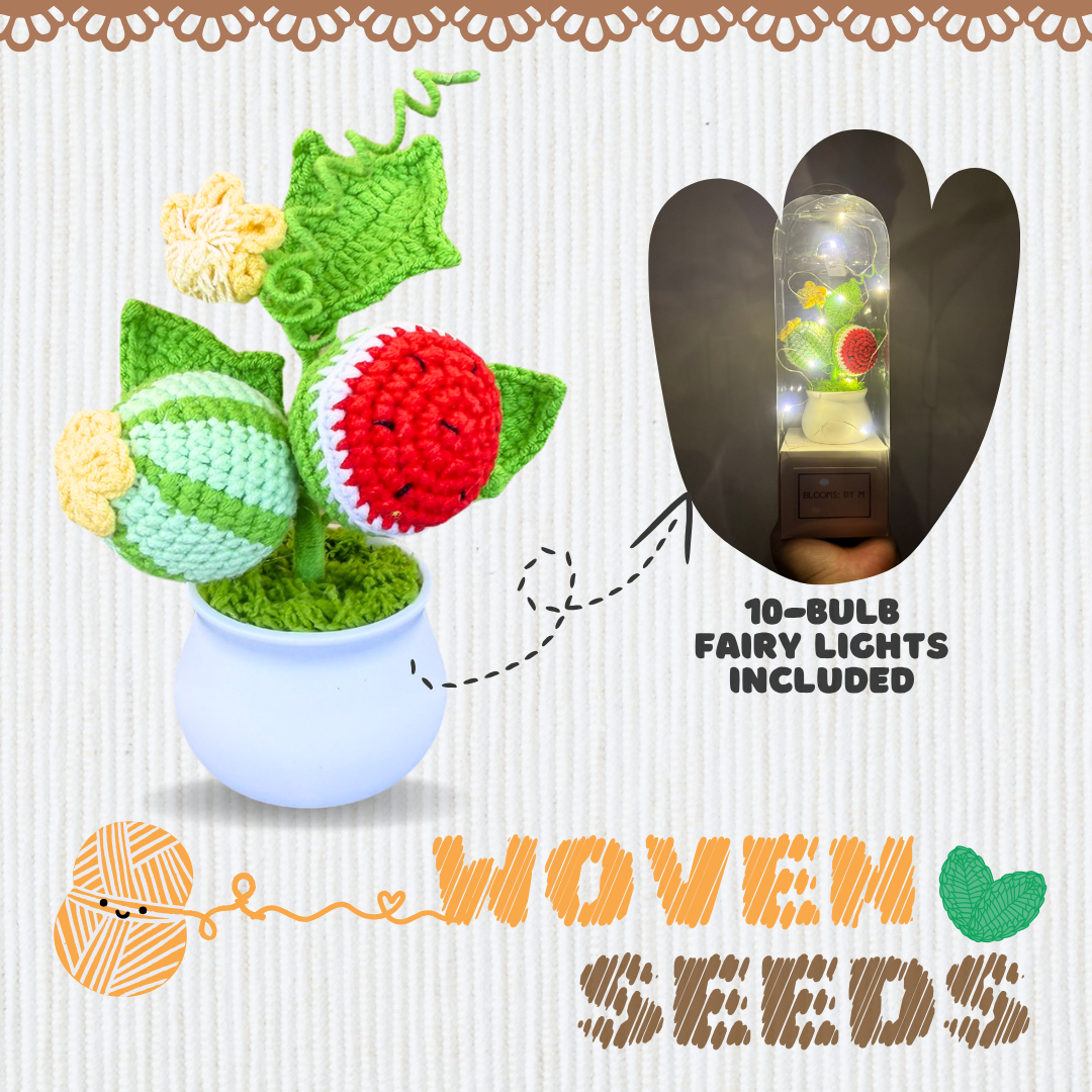 The natural lifecycle wonder of seeds to flowers and eventual fruition, combined with needlework art, bring about this forever piece of beauty that started with a ball of yarn.