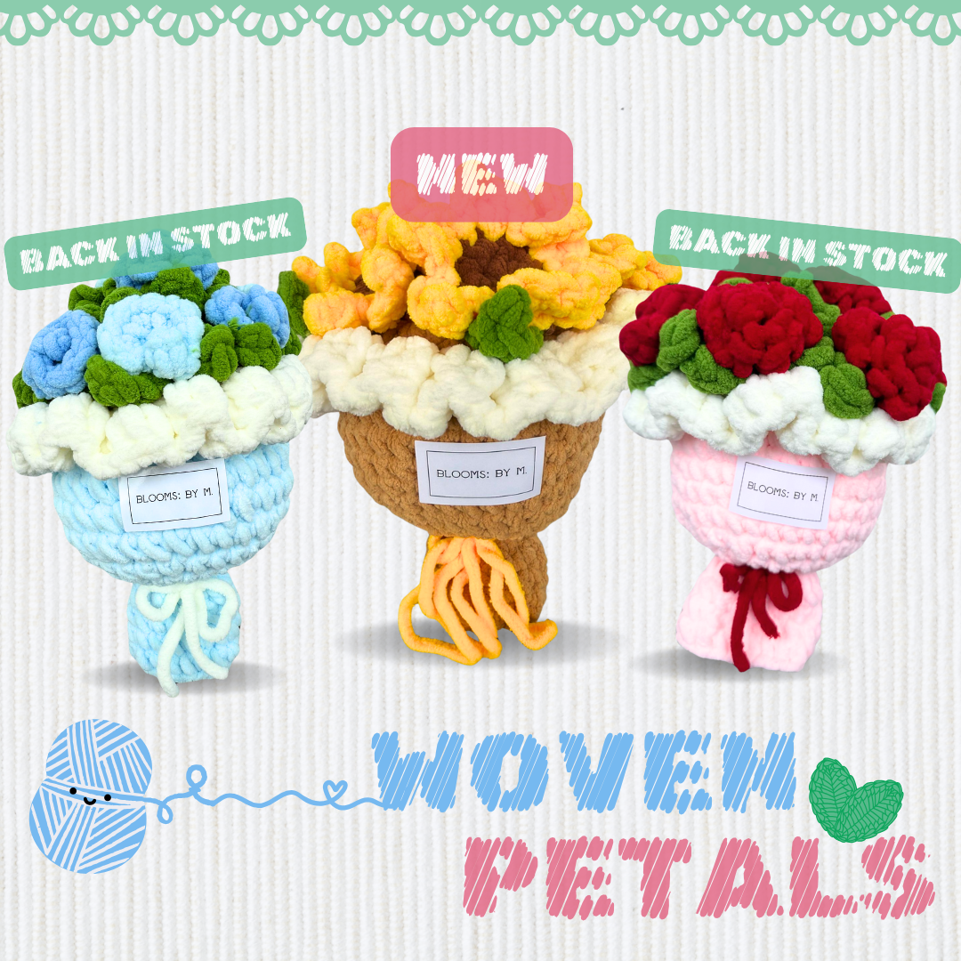 Woven Petals - Crochet Knit Flowers - Sunflowers Bouquet
